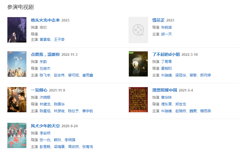 代表作品:风犬少年的天空、一见倾心、我要我们在一起、关于我妈的一切、点燃我,温暖你