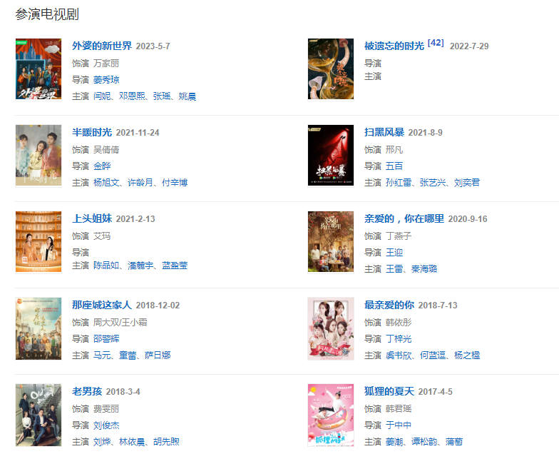 2022年7月,出演电视剧《被遗忘的时光》将在芒果TV全网独播。