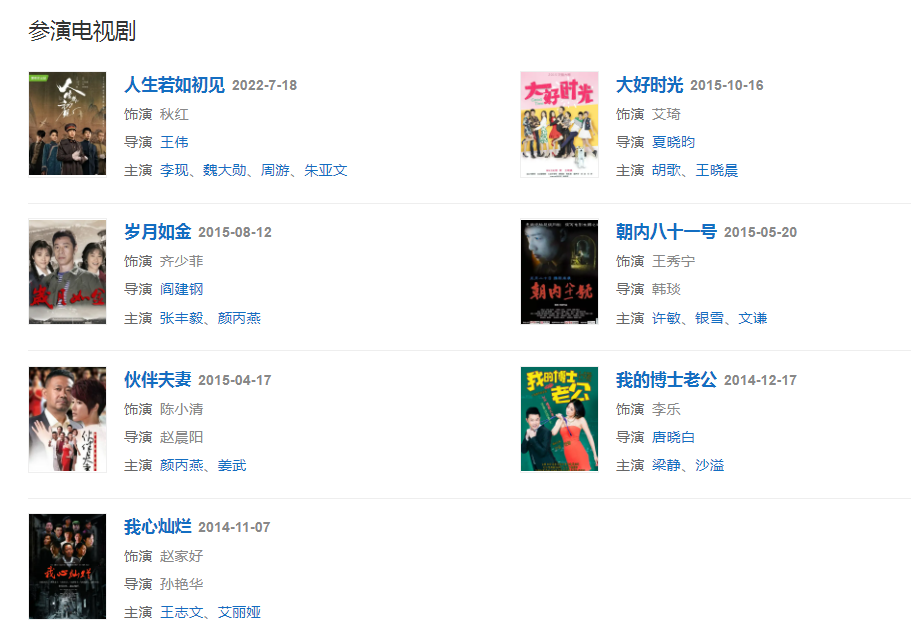 代表作品:踏血寻梅、脱皮爸爸、我心灿烂、我的博士老公、人生若如初见、风再起时