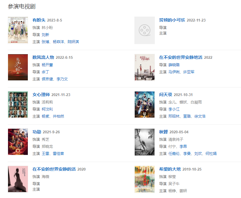 2023年6月24日,领衔主演的都市疗愈剧《女心理师》在江苏卫视播出;8月5日,与张博领衔主演都市情感剧《有盼头》在东方卫视播出,在剧中饰演为人正直善良的元气少女林小盼。