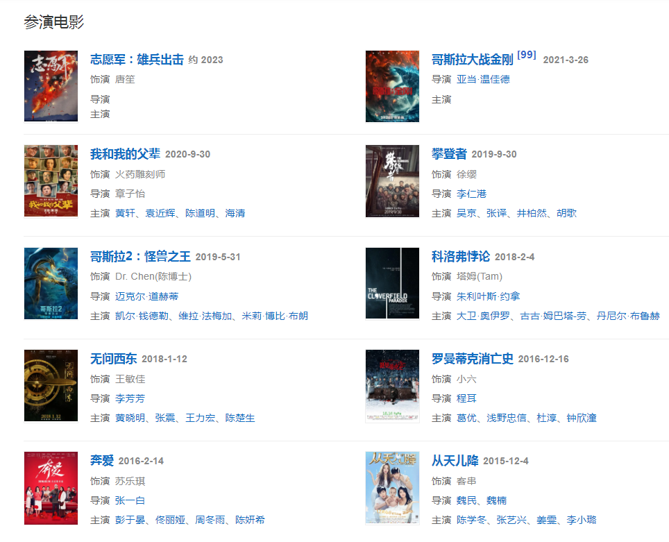 2021年9月30日,参与执导的影片《我和我的父辈》上映。