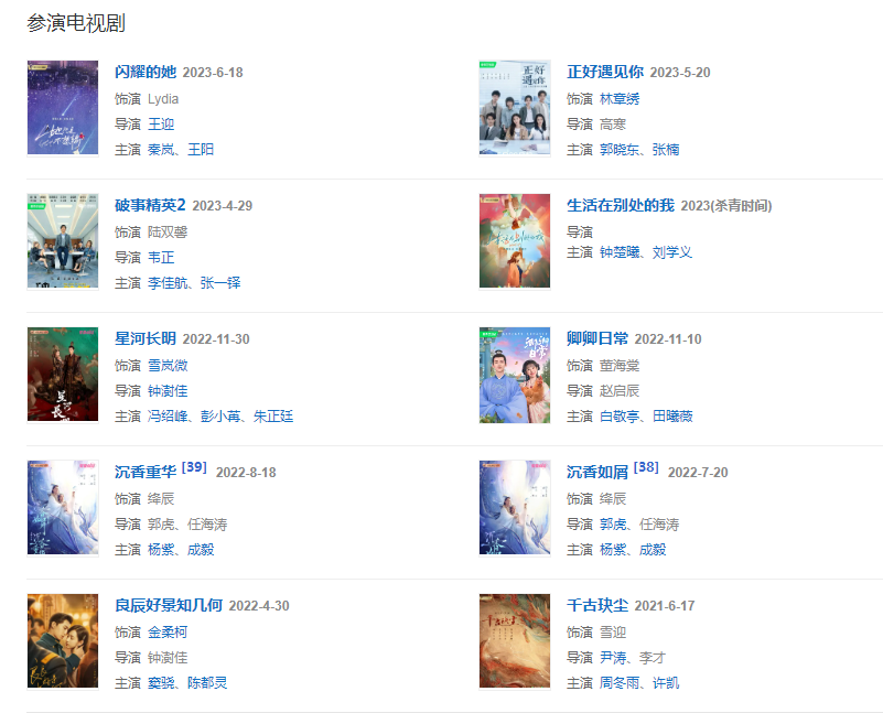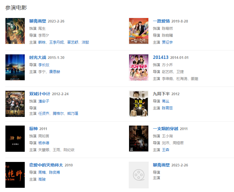代表作品:爱情公寓3、利箭行动、历史永远铭记、隋唐演义