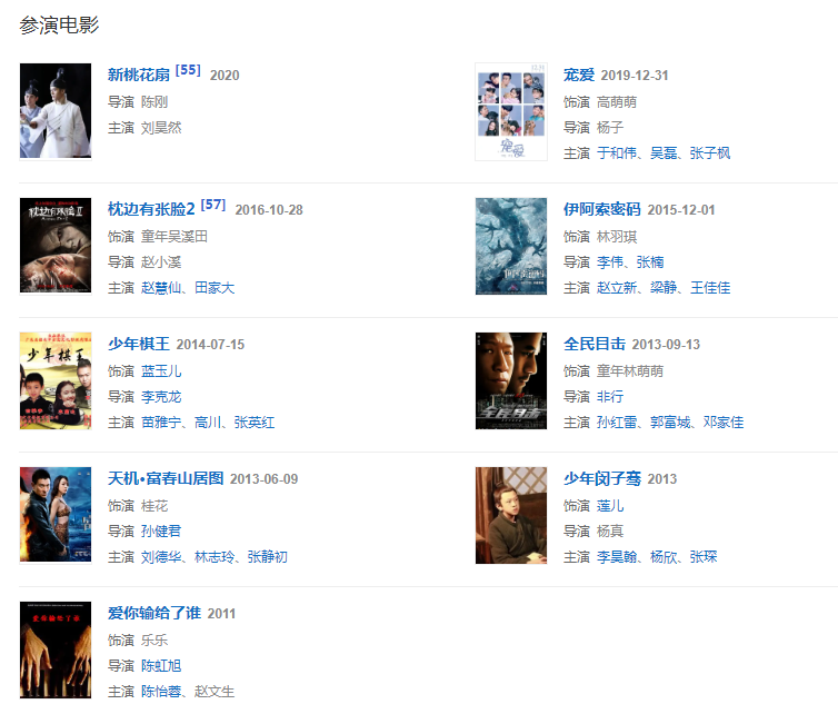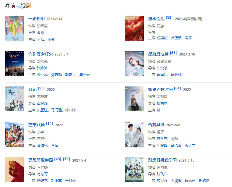 代表作品:你好,旧时光、星落凝成糖、原来你还在这里、少年棋王、无心法师Ⅱ、中国式关系、亲爱的,回家