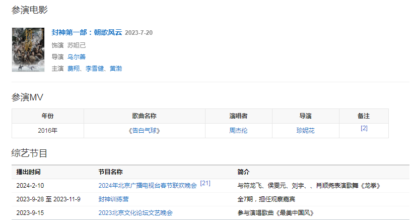 2023年,主演的神话史诗电影《封神第一部:朝歌风云》在中国大陆上映。