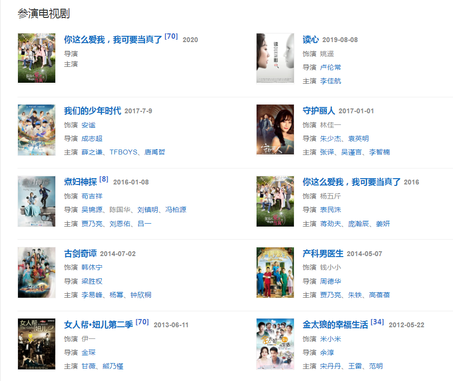 代表作品:天浴、都是天使惹的祸、奋斗、赤子乘龙、我的淘气天使、金太狼的幸福生活、煮妇神探、守护丽人、唐宫美人天下