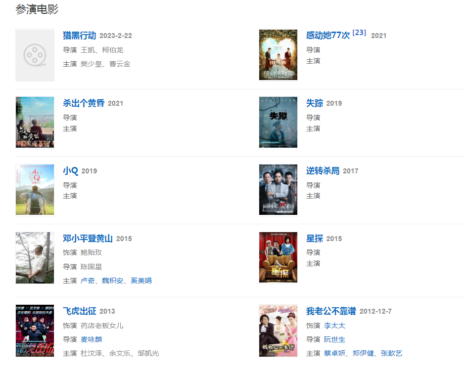 2023年2月22日,主演的扫黑题材电影《猎黑行动》在腾讯视频全网首播。