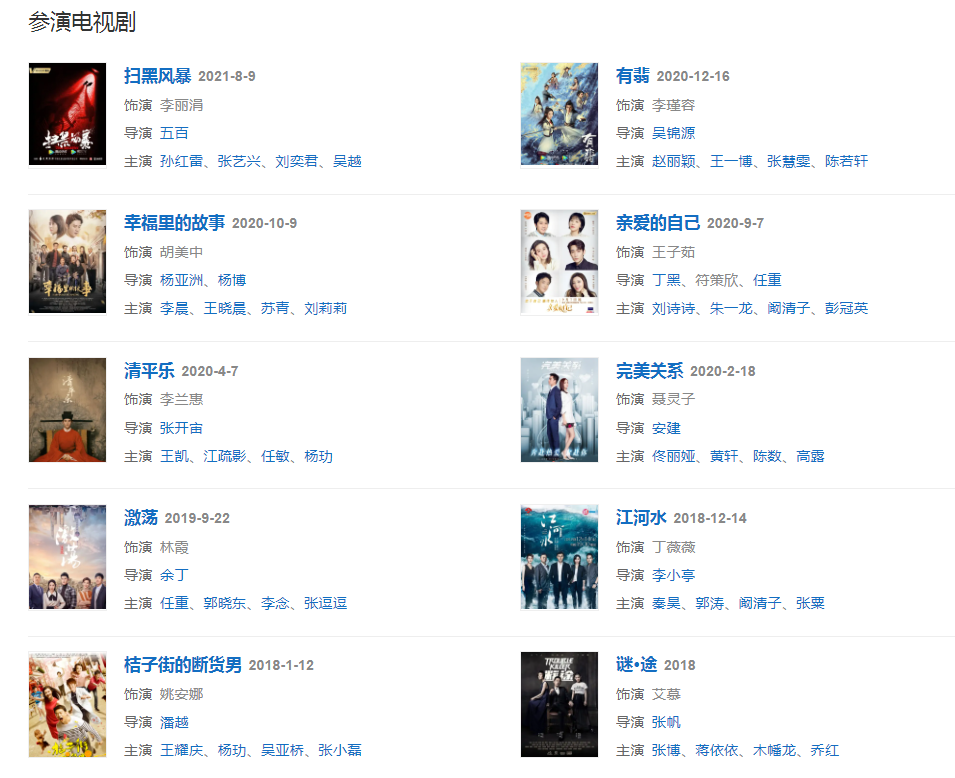 代表作品:沉默的证人、钻石王老五的艰难爱情、好先生、完美关系、有翡、亲爱的自己、扫黑风暴
