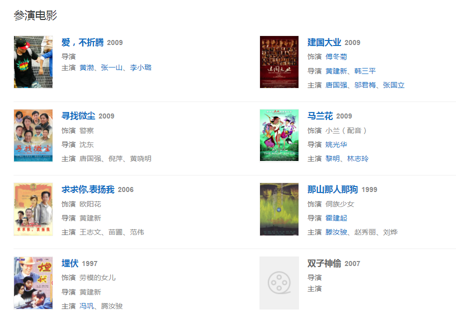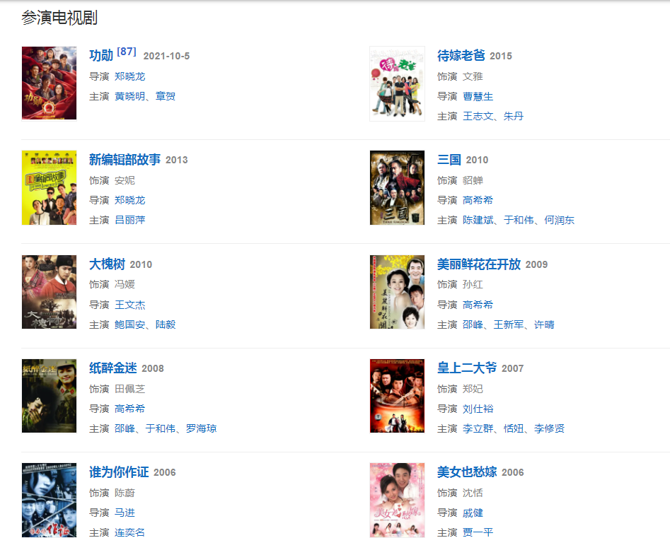代表作品:粉红女郎、双响炮、天龙八部、李卫当官、我爱河东狮、纸醉金迷、三国