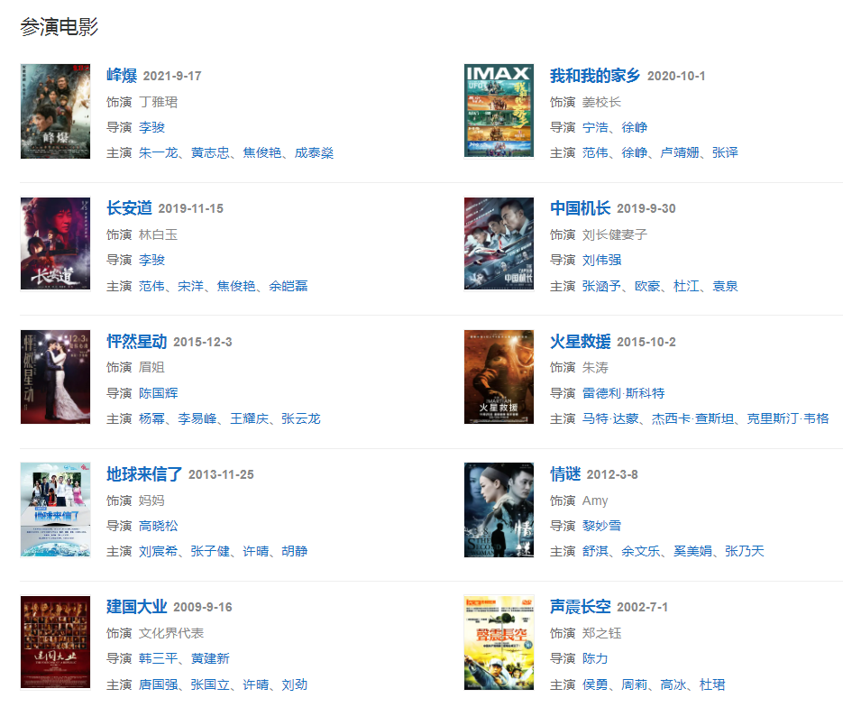 代表作品:暗算、旅人的故事、新上海滩、倾城之恋、铁梨花、我爱男闺蜜、夫妻那些事、择天记、和平饭店