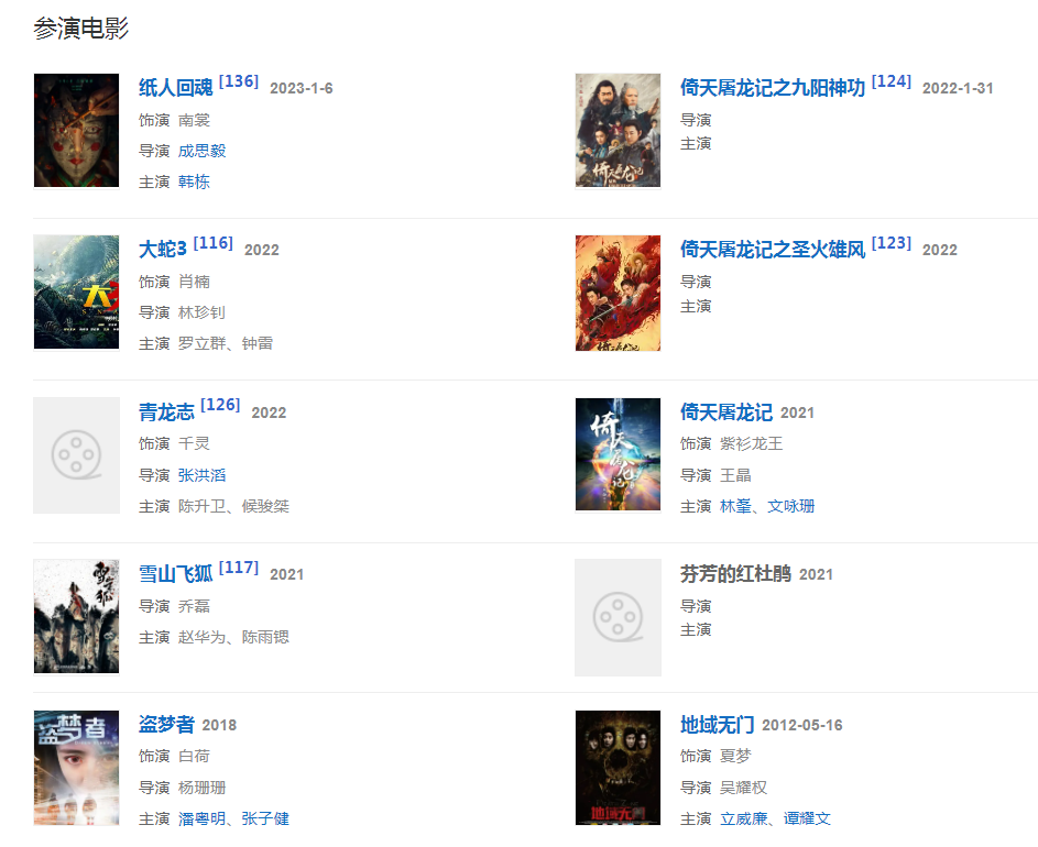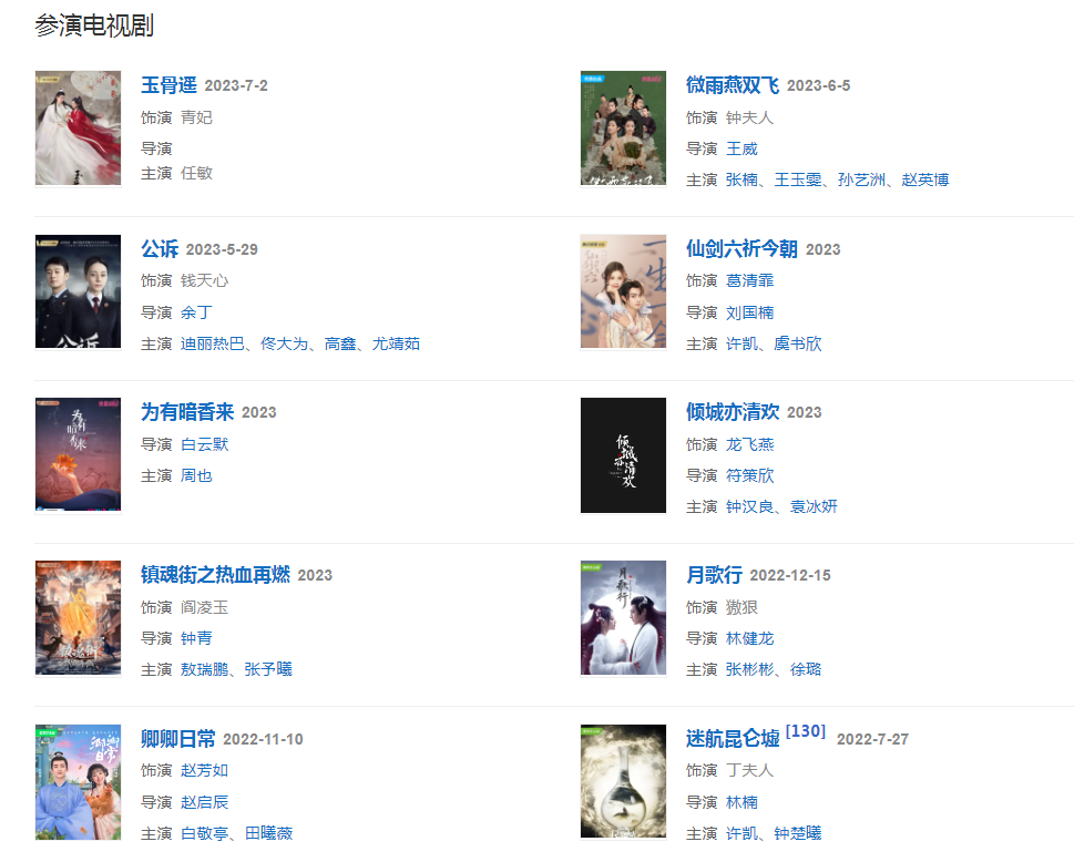 2006年,随着《白蛇传》、《神雕侠侣》等古装剧的播出被观众们所熟知。