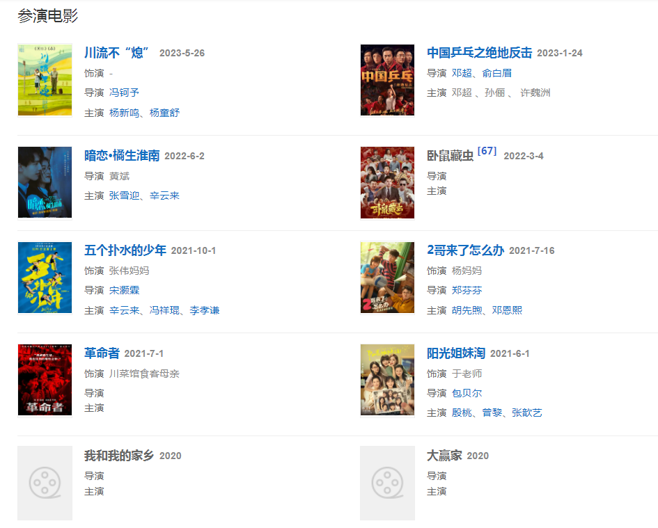 2006年与俞白眉合作了《房前屋后》、《无敌三脚猫》两部作品。