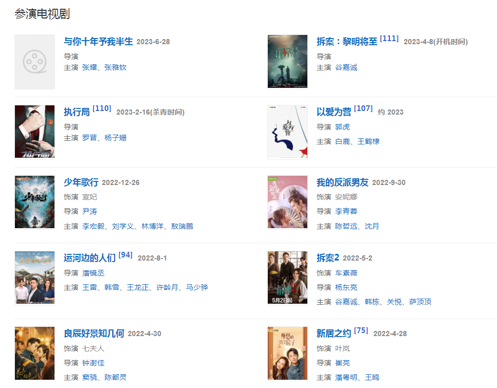 2010年,主演都市悬疑剧《无懈可击之美女如云》和青春励志喜剧《青春期撞上更年期》。