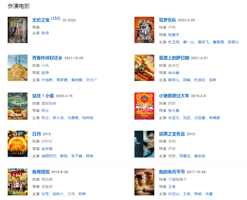 代表作品:皇嫂田桂花、有话好好说、新还珠格格、大考之年