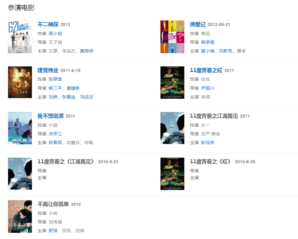 2010年出演网络剧《11度青春》系列走红 。