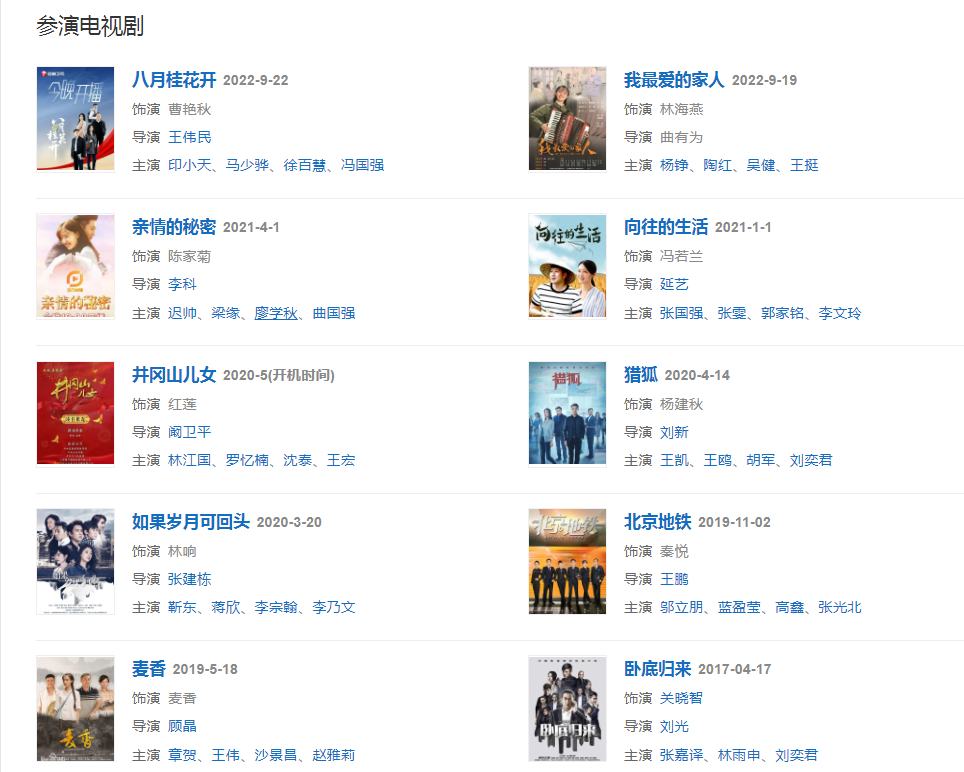 代表作品:拿什么拯救你,我的爱人、落地,请开手机、大爱无声、知青、团圆饭、卧底归来、麦香