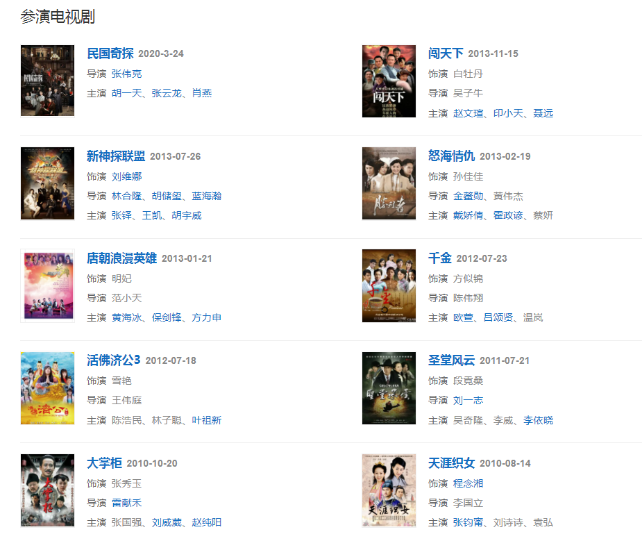 代表作品:少年包青天3、胭脂雪、仙剑奇侠传三、活佛济公三、天涯织女