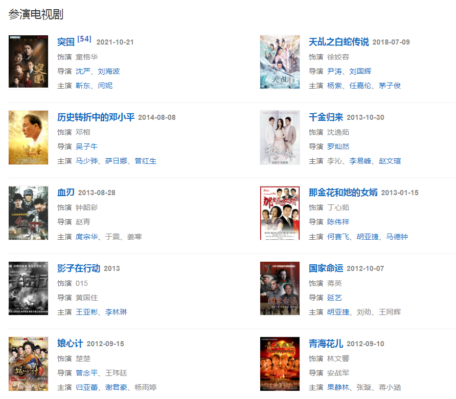代表作品:手心手背、牵手、为奴隶的母亲、那金花和她的女婿、麻辣婆媳、历史转折中的邓小平、攀登者