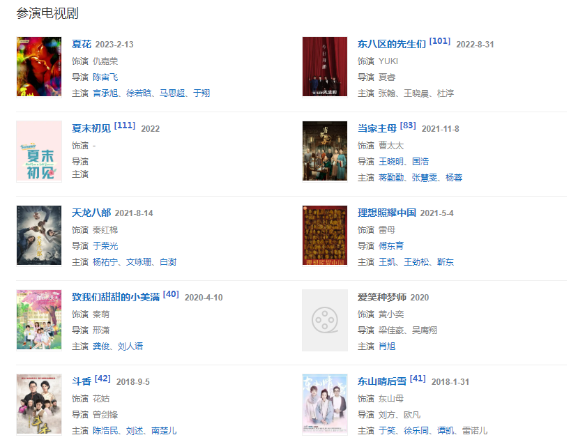 代表作品:上错花轿嫁对郎、还珠格格第三部、风云2、爱,在离别时、新女驸马、宫廷画师郎世宁、十全九美、识色,幸也