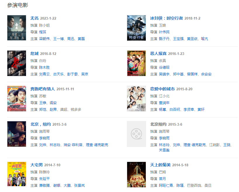 主要成就:第8届华语青年影像论坛年度新锐女演员奖