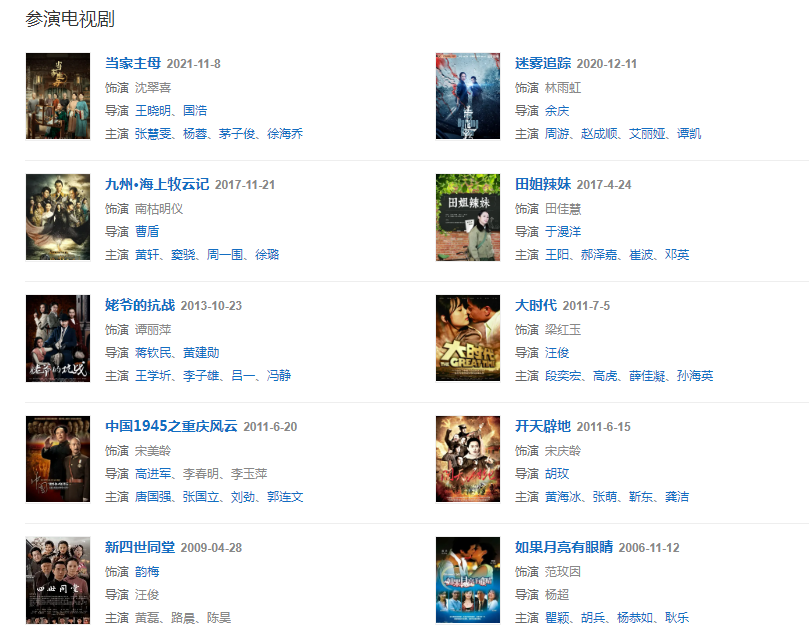 代表作品:乔家大院、一个勺子、青河绝恋、苍天有泪、半生缘、还珠格格第三部:天上人间、射雕英雄传、姐姐词典、英雄郑成功、风云