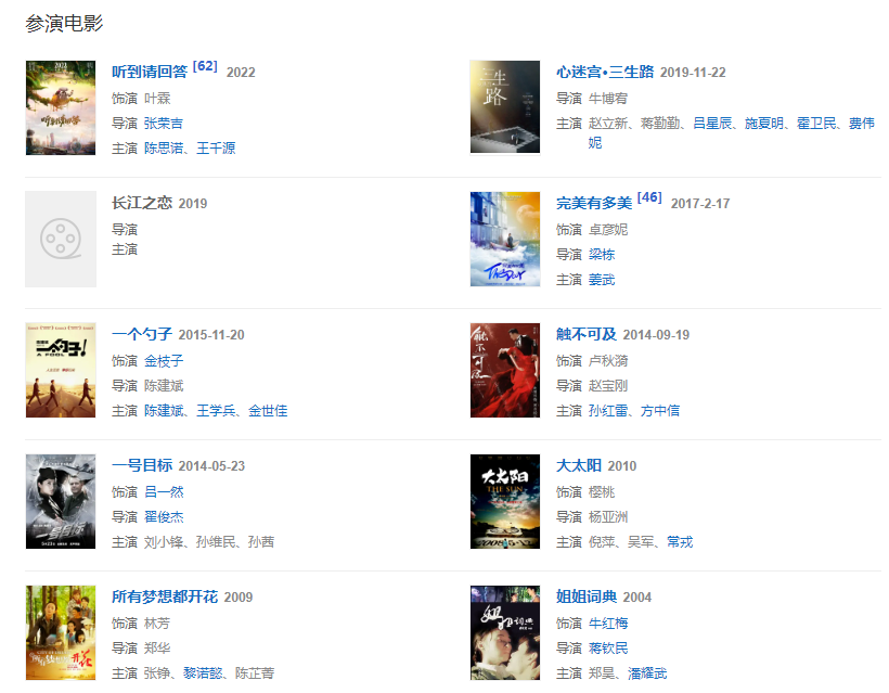 2009年,凭借励志电影《所有梦想都开花》获得了第13届中国电影华表奖优秀女演员提名。