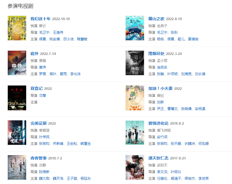 代表作品:遇见王沥川、幸福36计、青春集结号、陆垚知马俐、青云志、法医秦明、妖铃铃