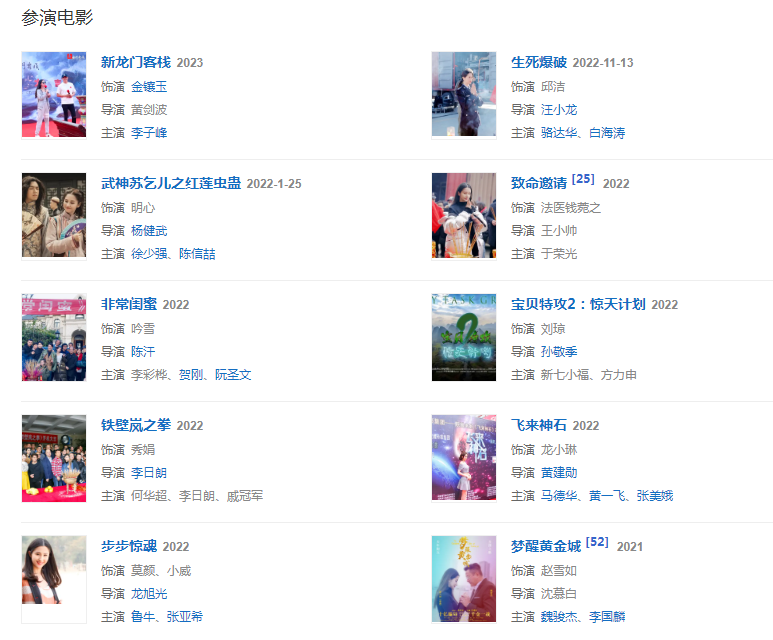 代表作品:隋唐英雄、蝴蝶之吻、蓝色金鱼、钻石豪门、新龙门客栈、一路惊喜、迷魂之密室逃脱