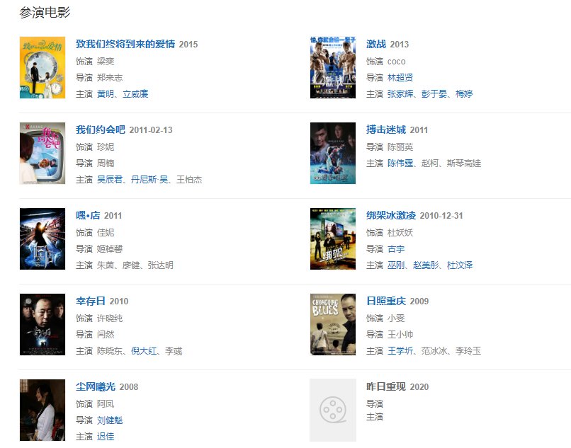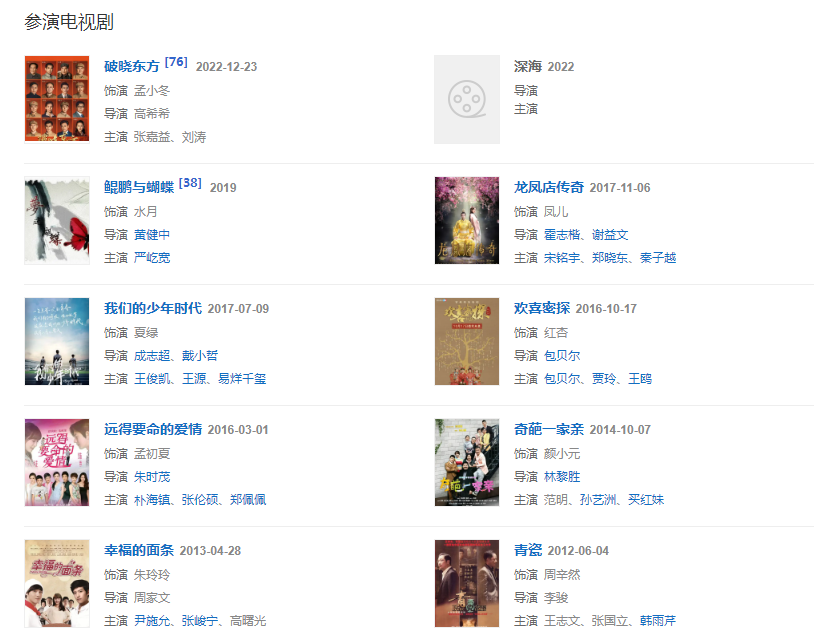 代表作品:鹿鼎记、锁清秋、我们约会吧、致我们终将到来的爱情、激战