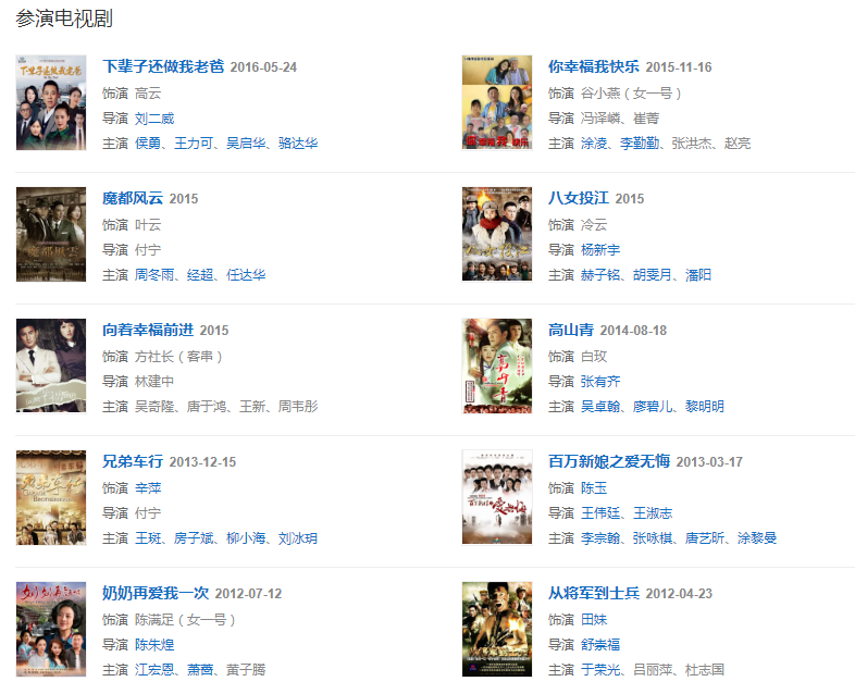 2013年主演农村题材轻喜剧《你幸福我快乐》。