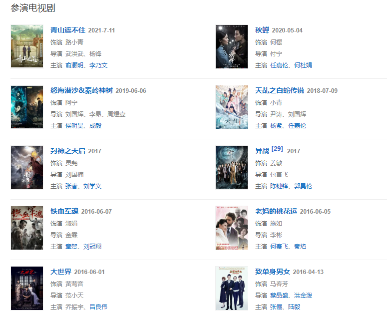 2018年,她主演的古装神话剧《天乩之白蛇传说》在爱奇艺视频播出 。