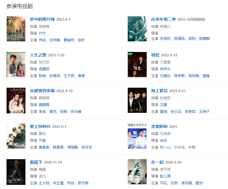 作室代表:作品红楼梦、庆余年、楚乔传、白鹿原、花开半夏、千金归来、璀璨人生、锦绣南歌、爱上特种兵、温暖的抱抱、守望的天空、狼殿下
