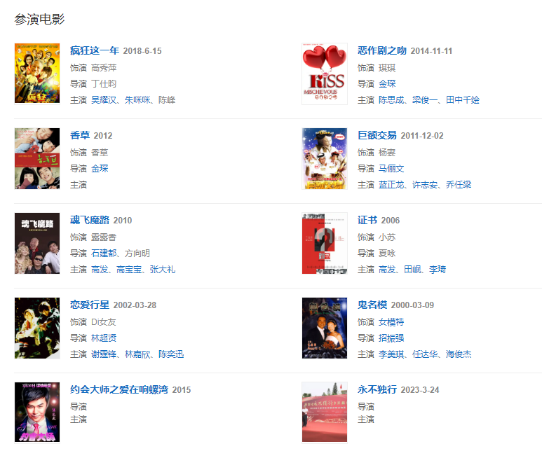 代表作品:倚天屠龙记、汉武大帝、利箭行动、大路上、夏至未至、上古情歌、扶摇、密查、逆光