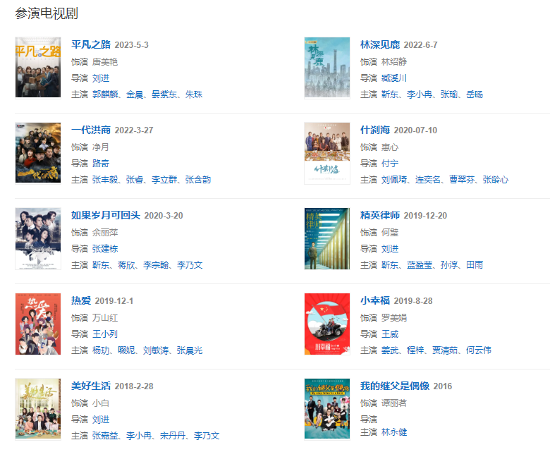 2020年,主演家庭都市剧《嗨,什刹海》,剧中饰演庄志存的前妻惠心。