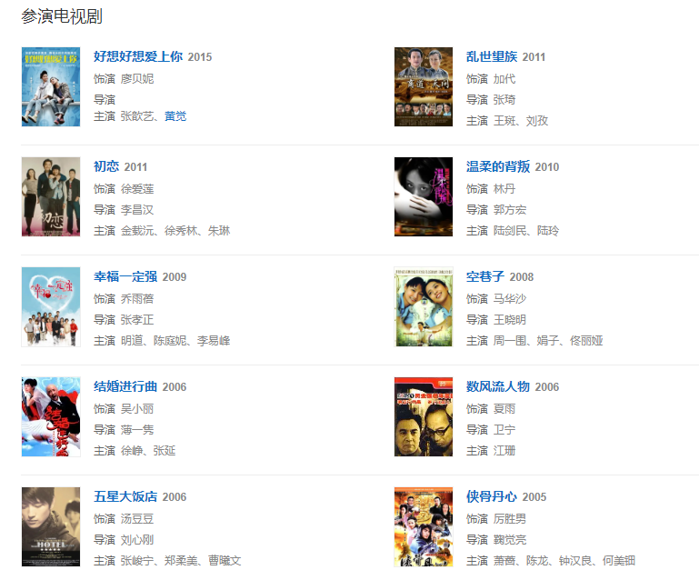 2006年,参演电视剧《数风流人物》,饰演女一号夏雨。同年与房祖名、陈柏霖主演电影《PK.COM.CN》,饰演女主角吴羽飞。