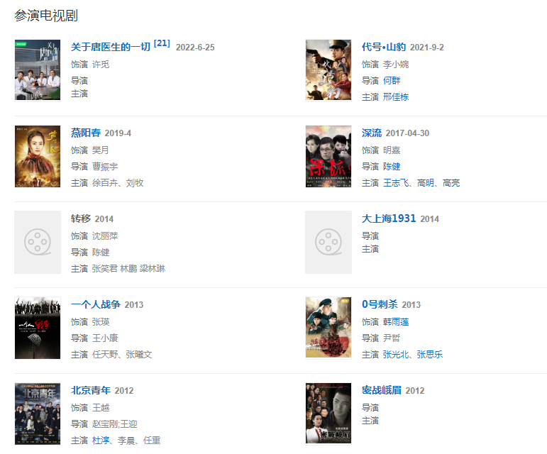2021年,与邢佳栋主演的抗日谍战剧《代号·山豹》在央视八套播出 。