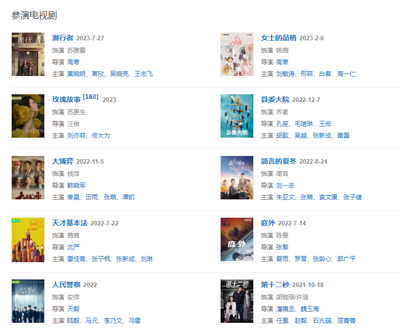 代表作品:柳如是、军中乐园、你好,疯子!、猎场、脱身、大唐荣耀、新世界