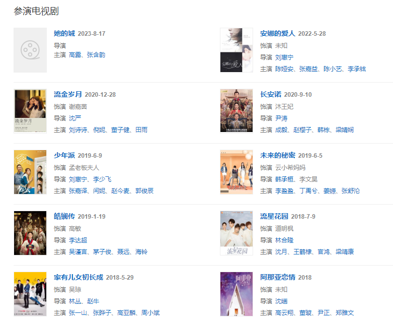 2015年参演电视剧《花开如梦》和《爱情珠宝》。