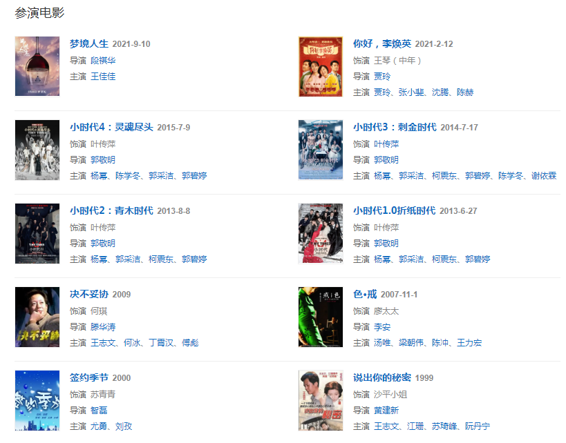 2001年在琼瑶剧《情深深雨蒙蒙》中塑造“雪姨”一角,为观众所熟知。