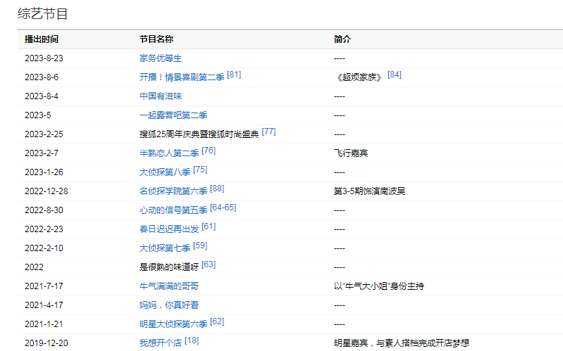 2022年1月26日,参加的《大侦探第七季》发布定档海报。 2022年,加盟芒果TV打造的社交观察类真人秀《春日迟迟再出发》。 2月10日,参与录制的芒果TV《大侦探第七季》开播。5月29日,参加的综艺《是很熟的味道呀》官宣阵容。