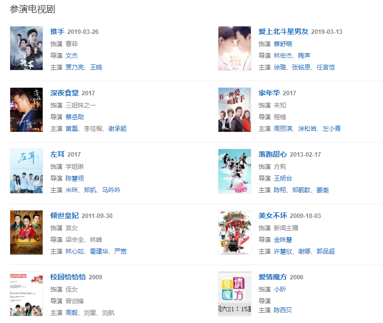 代表作品:快乐大本营、爱上北斗星男友、白日梦、爱in思谈