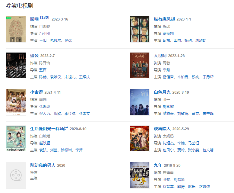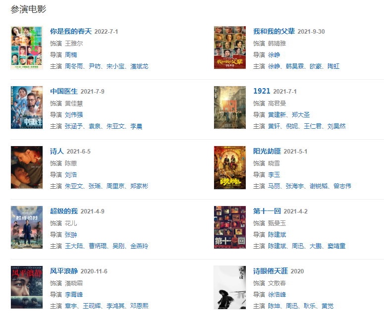 代表作品:其实不想走、闯关东、悬崖、萧红、师父、诗人、建军大业