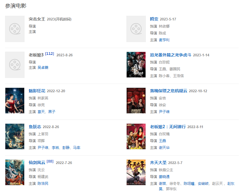 代表作品:将爱情进行到底、澳门风云3、余罪、追龙、大嫂、纹身:西部纵横