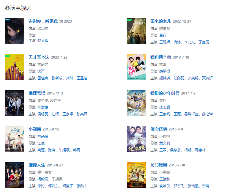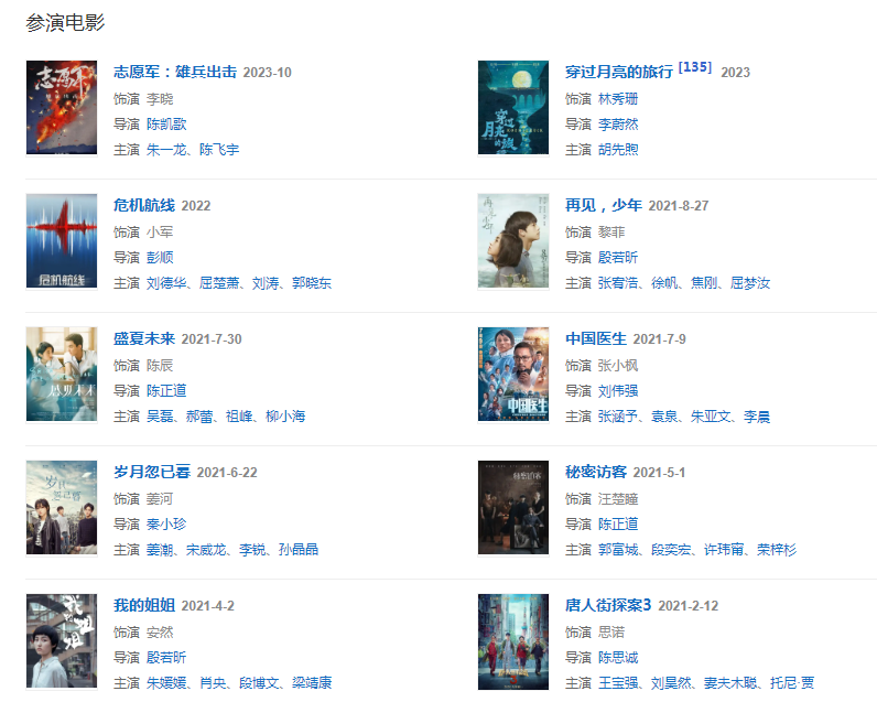 职 业:演员代表作品唐山大地震、唐人街探案、快把我哥带走、我的姐姐、你好,之华、盛夏未来、小别离