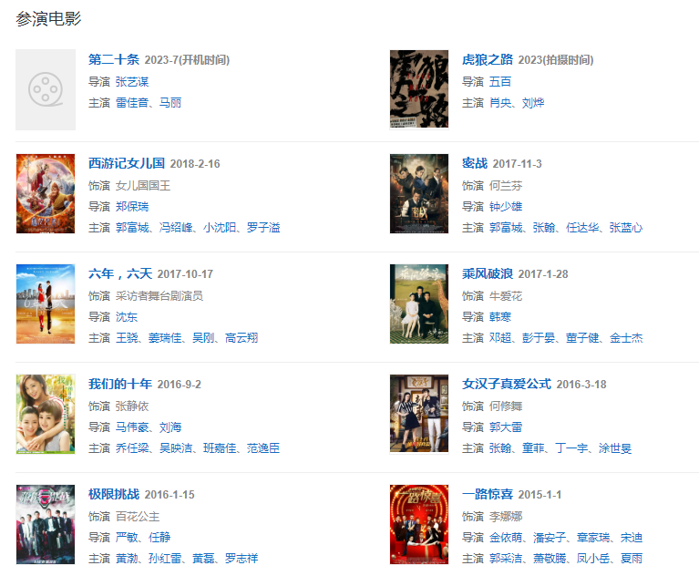 2016年,担任河北省旅游形象大使。2017年,凭借电影《乘风破浪》获得第24届北京大学生电影节最受大学生欢迎女演员奖;而其主演的古装剧《楚乔传》则成为了中国内地首部在播期间网络播放量突破400亿次的电视剧。