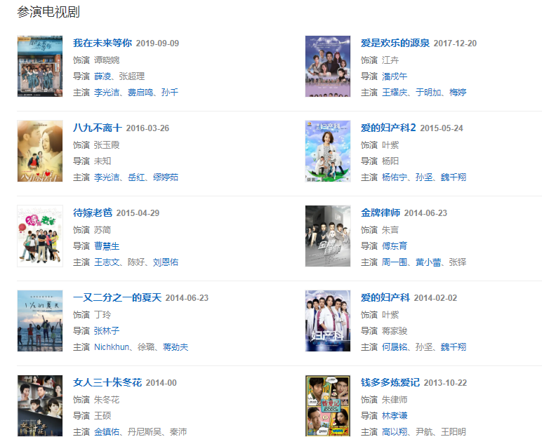 代表作品:青春那些事儿、中国最强音、女人如歌、我爱记歌词、女人三十朱冬花、爱的妇产科、待嫁老爸