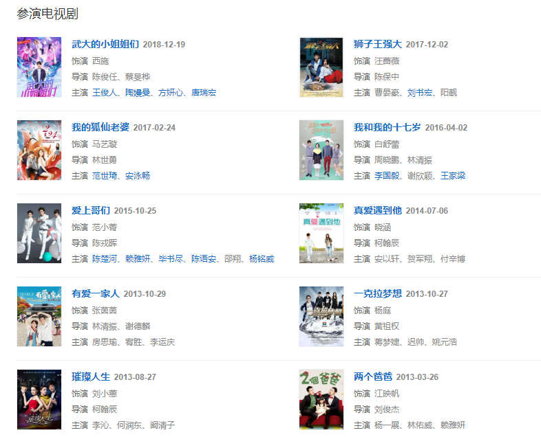 2018年12月19日,主演青春励志喜剧《武大的小姐姐们》在优酷上线,在剧中饰演西施。