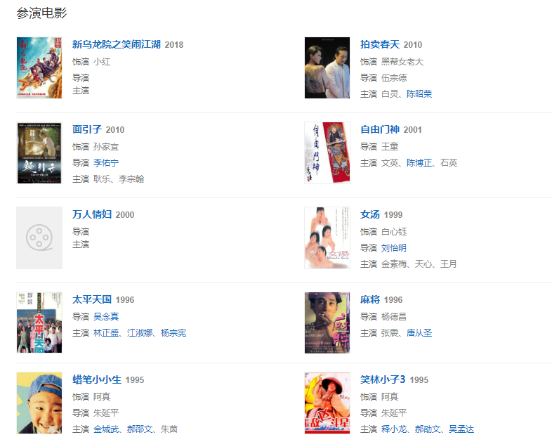 1995年,主演朱延平执导的动作类影片《中国龙》,同年,主演朱延平执导的喜剧动作类影片《逃学战警》,同年,主演朱延平执导的动作喜剧类影片《笑林小子3》。
