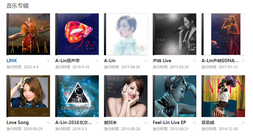 2017年,发行个人同名音乐专辑《A-Lin》。
