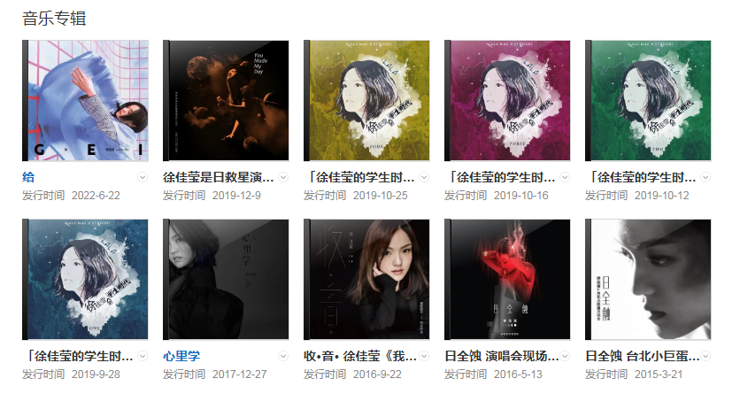 2019年9月底,徐佳莹陆续发行了《徐佳莹的学生时代》系列EP,该EP收录了其学生时期的十二首全创作曲目,而这些作品也奠定了她的音乐成长之路。