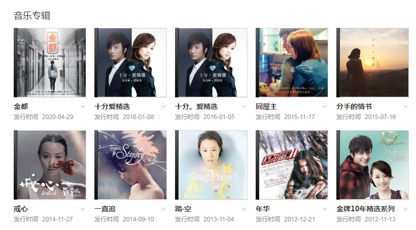代表作品:他不准我哭、黑白照、电灯胆、七夕(歌曲)、龙咁威、十分爱、72家租客、暗恋99天、公主的诱惑(影视)、金都